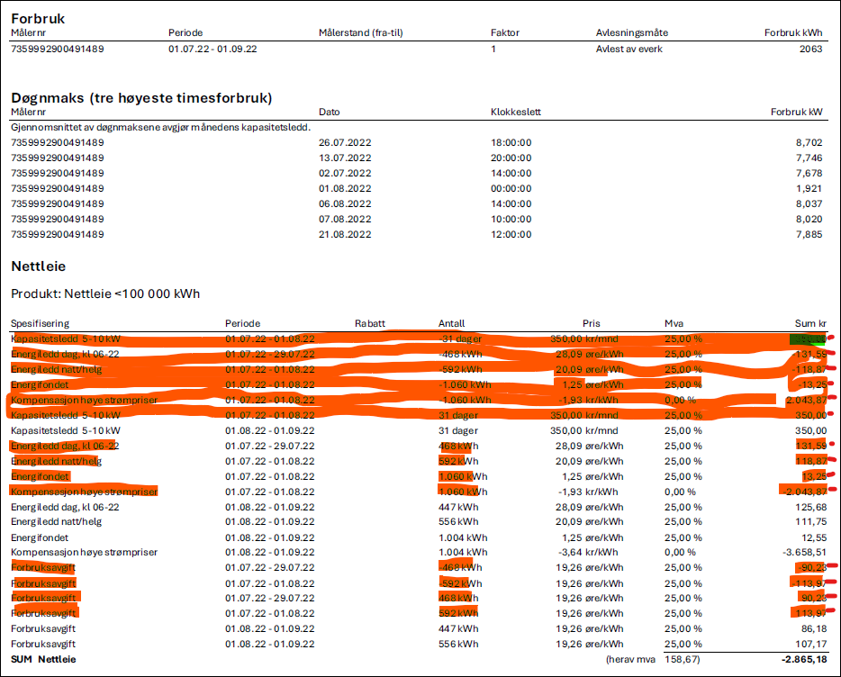 Fra LNETT: -2.865,18 inkludert strømstøtte på kr. 3.658,51